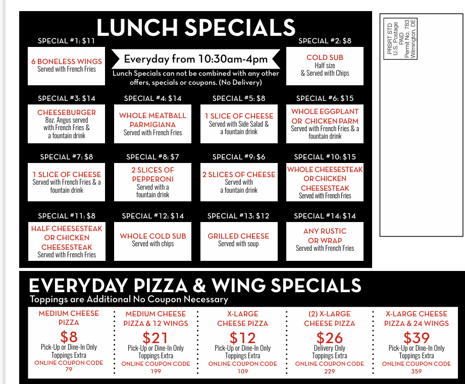 Pat’s Pizza & Pasta offers a menu that’s straightforward and inviting, perfect for casual dining or a relaxed takeout experience. The selection balances familiar comfort foods with a few unique twists, making it easy to find satisfying options whether you’re grabbing a midday meal or unwinding in the evening.